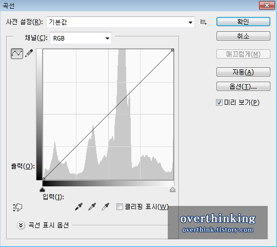 그리고 [Ctrl+M] 을 눌러 곡선을 열어주세요.