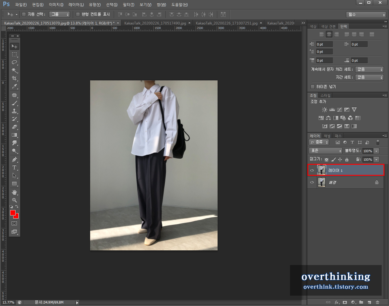 해당 사진을 불러와 [Ctrl+J] 를 눌러 레이어 복사를 해주세요.