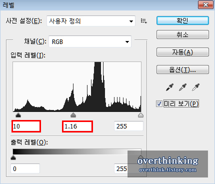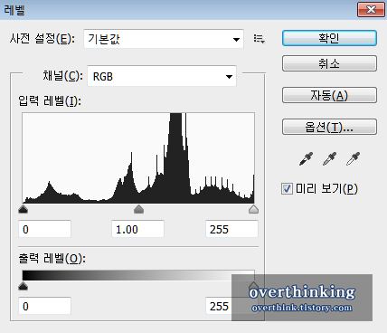 그리고 레벨값을 조절하기 위해 [Ctrl+L] 을 눌러 레벨창을 열어주세요.