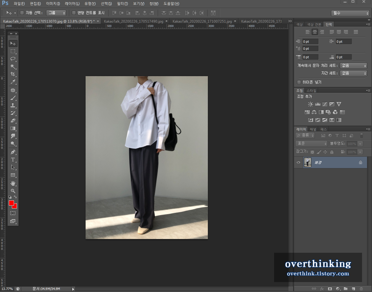먼저 포토샵을 실행하여 보정을 하고 싶은 사진을 불러와주세요.