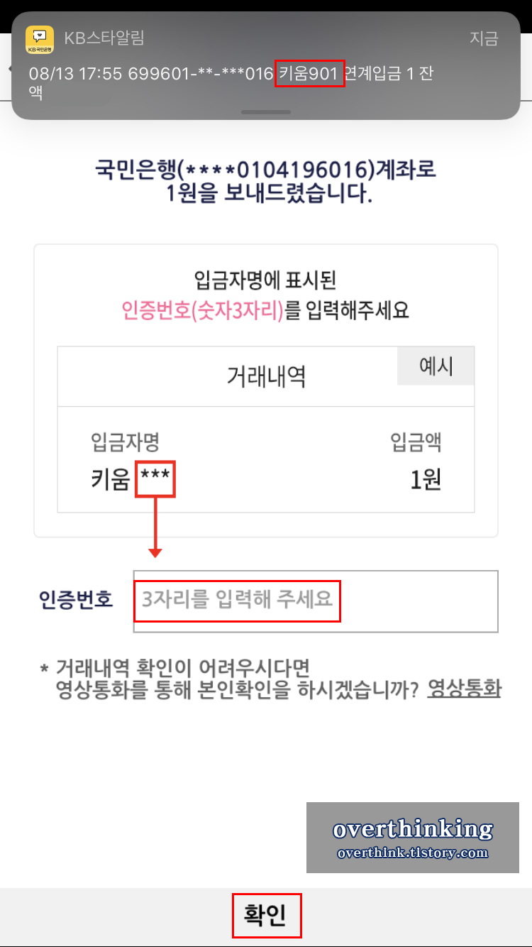 [1원입금확인] 을 통해 본인 인증을 한번 더 진행합니다.