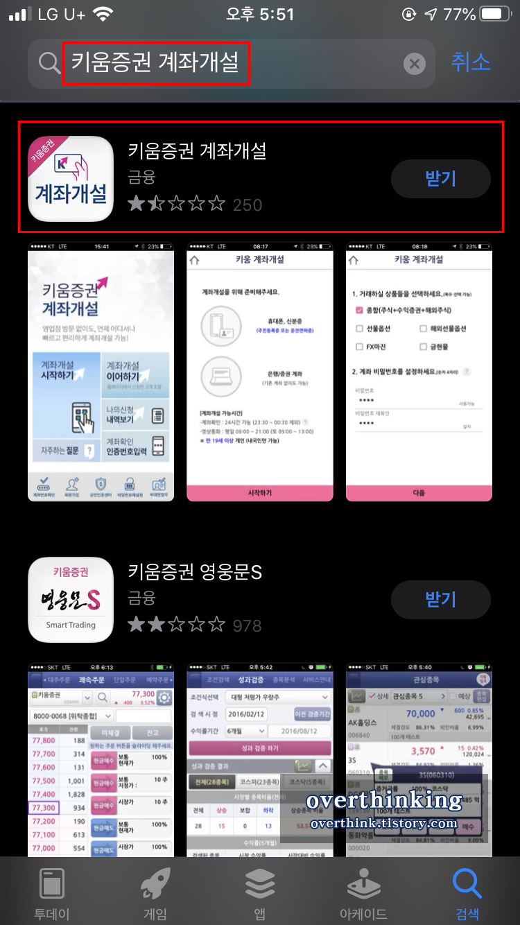먼저 앱스토어에 [키움증권 계좌개설] 을 검색해주세요.
