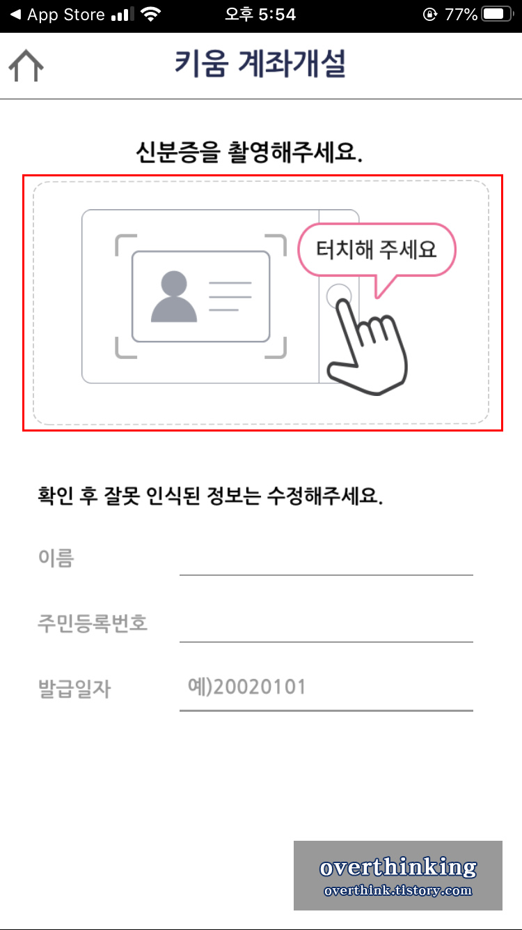 그리고 미리 준비해둔 신분증을 촬영해주세요.