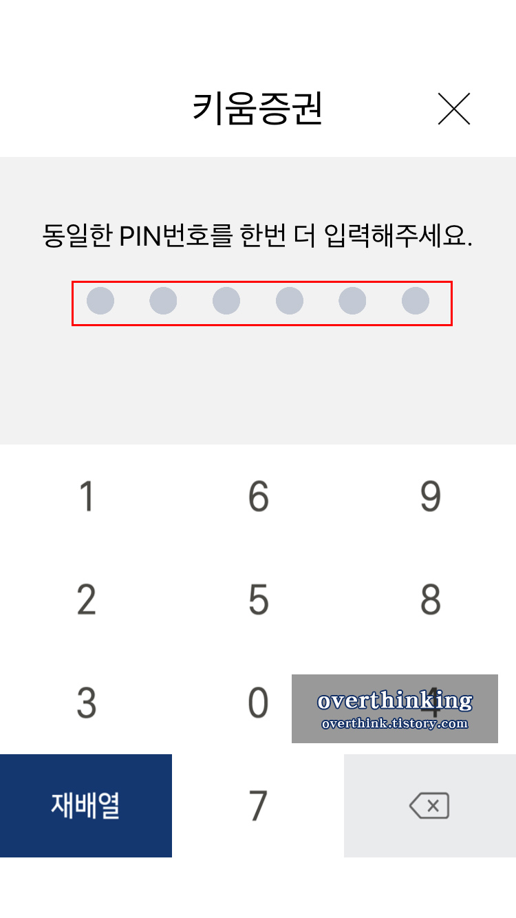 마지막으로 간편 비밀번호 6자리를 입력해주시면 완료됩니다.