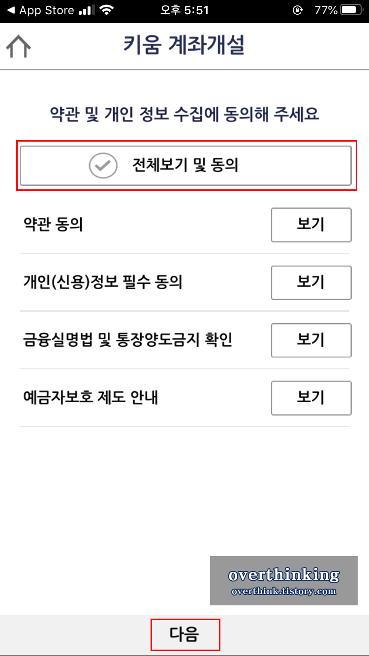 약관을 확인하신 뒤 [다음] 버튼을 눌러줍니다.